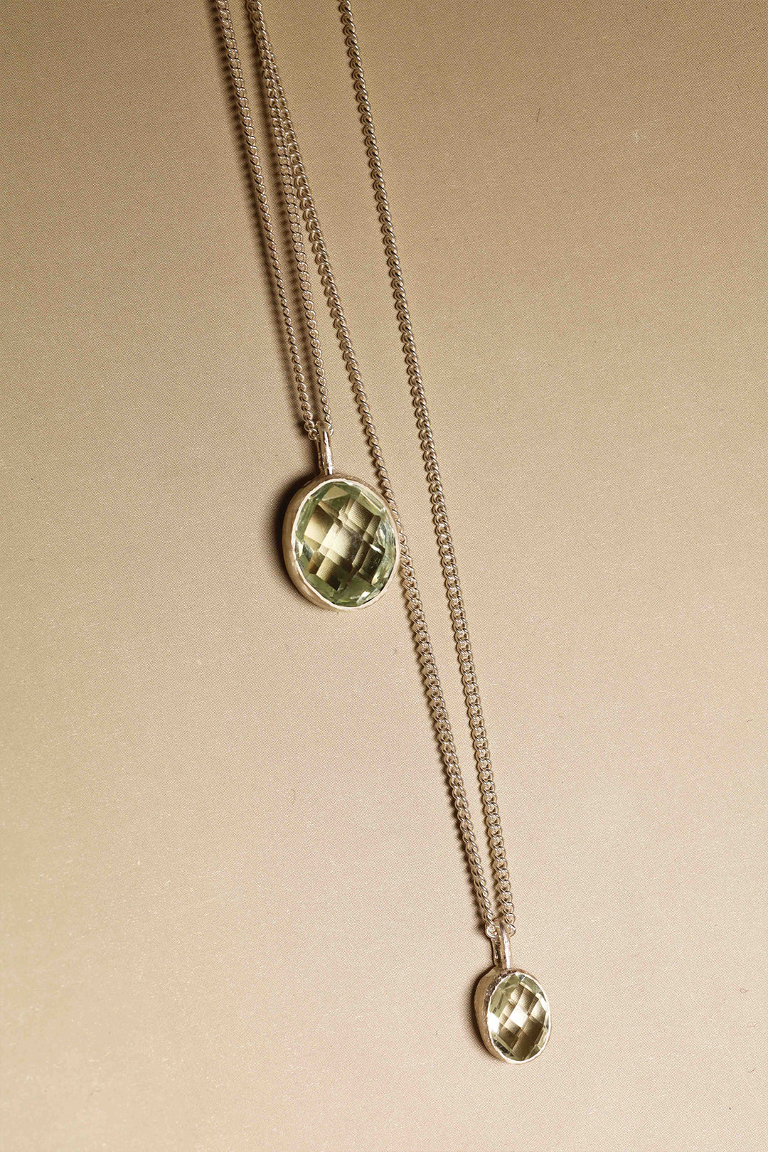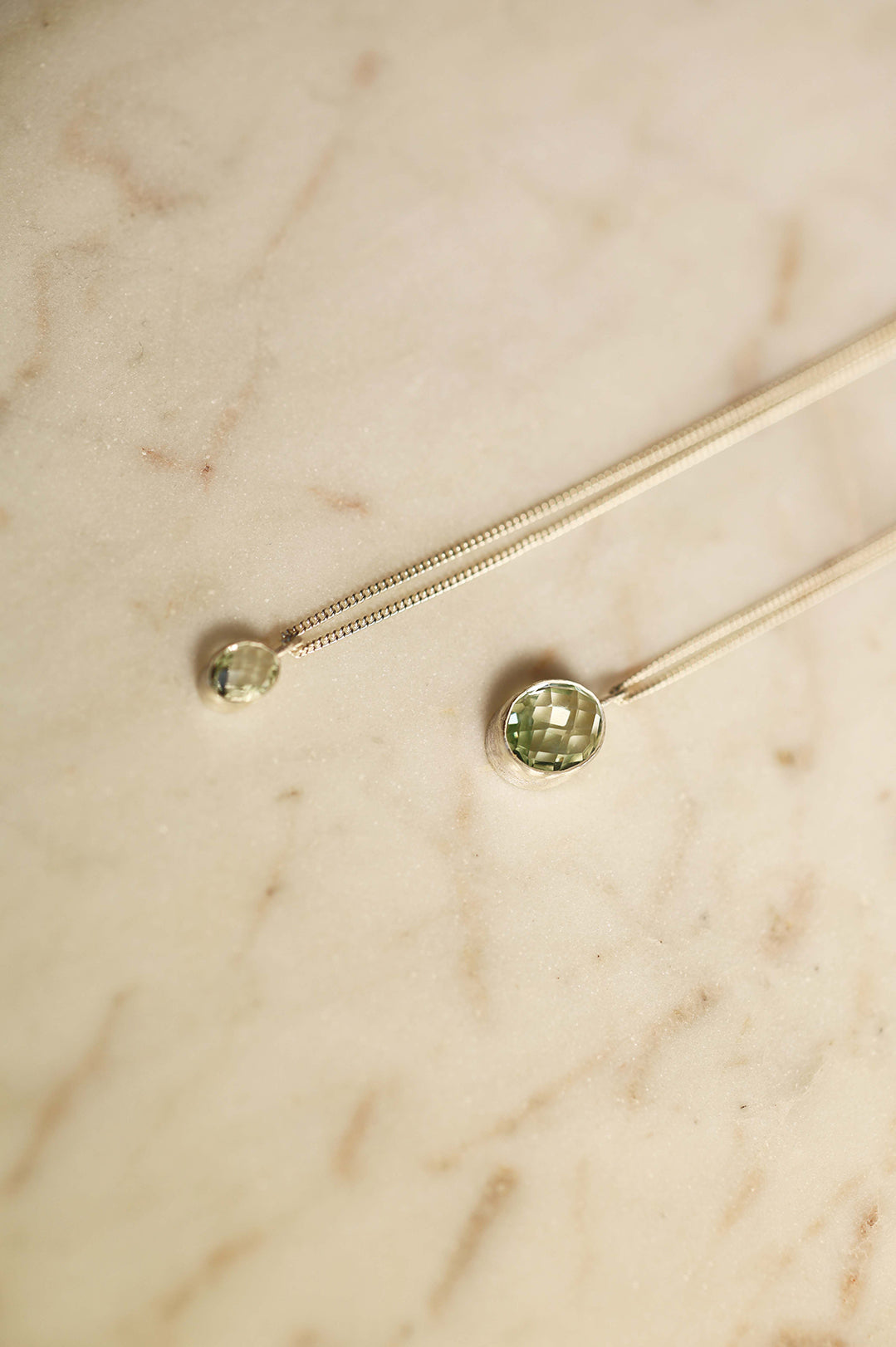 Insgesamt stehen 9 Prasiolith-Anhänger zur Verfügung – 6 kleine (6 × 8 mm) und 3 große (12 × 10 mm).